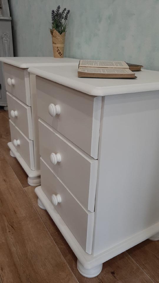 2. Bútorfestés Annie Sloan Satin Paint festékkel – Fenyő éjjeliszekrények