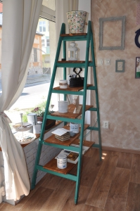Még a régi almásládákat is előszedtük a pincéből. Aztán persze nekiálltam ezek festésének, átalakításának. A létra alapos lazúrozás után Florance, az ablakkeretek Provance ruhát öltöttek.