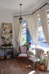 Fúrtunk, faragtunk, csiszoltunk, takarítottunk több napon át családi összefogással, majd helyükre kerültek az utolsó díszítő elemek is: a függönyök, virágok, lámpák, csetreszek és a cégtábla is. Minden ecsetvonás, minden szeg, csavar saját és családtagjaim keze nyomán került a helyére, ettől még kedvesebb számomra az eredmény!