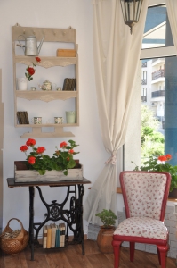 Leginkább egy vintage stílusú kertet szerettem volna magam köré varázsolni, (bevált nekem a kertben festegetés ), de zárt térben, a szabadtéri növényeket nélkülözve ez nehéz feladat lett volna, így kompromisszumos megoldásként egy terasz jellegű berendezés mellett döntöttem.