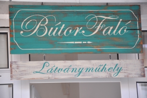 Képzeljétek! A szépséges cégtáblámat ingyen elhozható raklapból készítettem! 🙂 Számos jó ötletet láttam már, hogy mi mindenre használhatók a raklapok és örömmel jelentem, hogy a cégtábla készítés is felkerülhet a megvalósítható lehetőségek listájára. Épp az egyik festési és burkolási kellék beszerző utunkat róttuk, amikor is hirtelen kiszúrtam néhány szép példányt hányódni az egyik áruház oldalánál. Mivel nem nagyon volt már időm a cégtábla ügyében szaladozni, gondoltam egy próbát megér a dolog. Lefeszegettük a deszkákat és összeerősítettük a szebbeket. Csiszolgattam, lazúroztam, majd amolyan vintage-esen színre festettem. A logó és a felirat is rákerült, majd waxoltam és már akasztottam is a helyére! Ugye jó lett!?