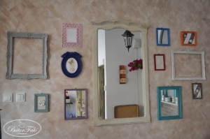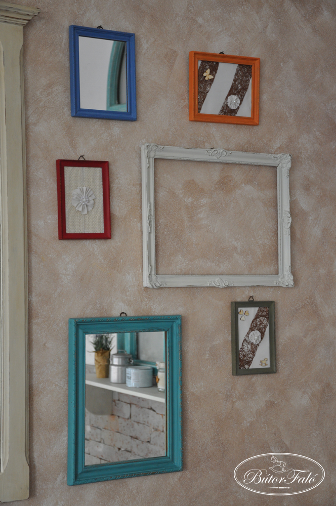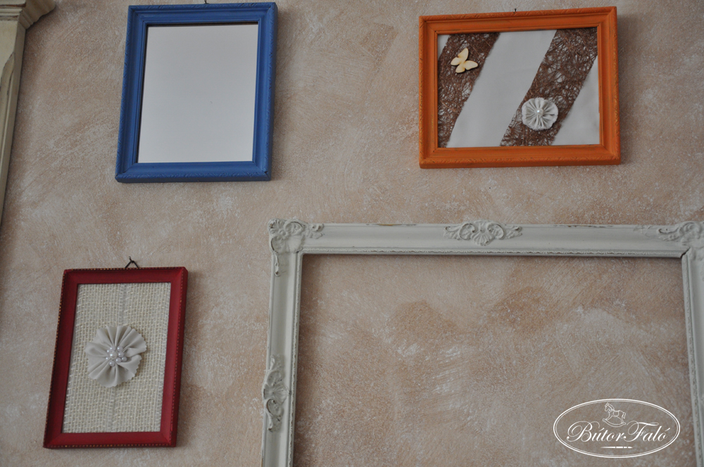 A bolhapiacon, az IKEA-ban és a garázsban talált kisebb-nagyobb keretek így különböző színeket kaptak, némelyikbe tükör vagy apró dísz költözött, másokba krétatábla készül.
