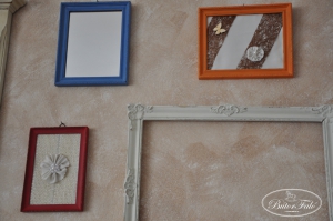 A látványműhelyem falán mindenképp szerettem volna bemutatni az Annie Sloan Chalk Paint színeit és persze azt is, hogy blondell és akár műanyag képkereteket is remekül lehet vele dekorálni, újjá varázsolni vagy épp ellenkezőleg: régies hatásúvá változtatni.